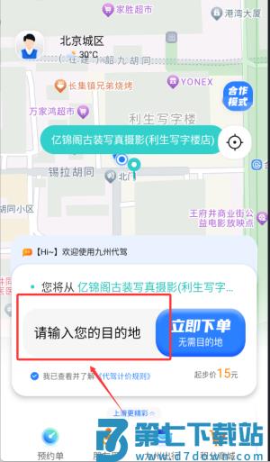 2、填写出发地与目的地信息,提交需求呼叫代驾服务人员。