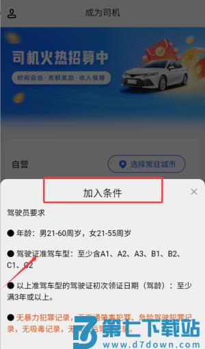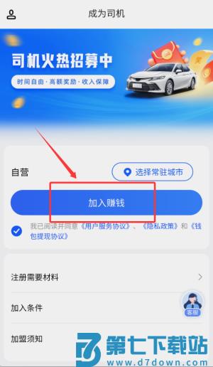 2、选择加入专车司机行列,开启您的职业驾驶旅程。