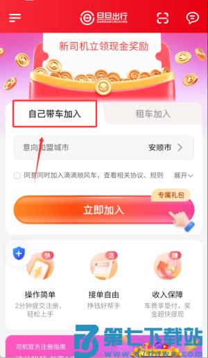 2、使用个人自有车辆申请加入,完成资质审核与车辆认证。