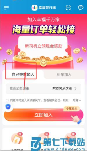 2、使用个人自有车辆申请加入,完成资质审核与车辆认证。