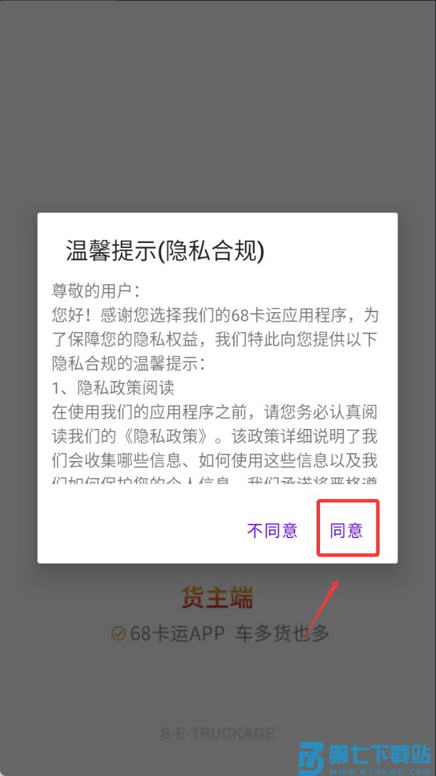 1、首先点击同意并进入应用,开启您的货运服务便捷操作流程。