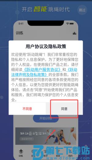 1、阅读并确认服务协议,点击进入跳绳功能主操作界面。