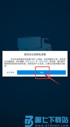 1、启动星软车联应用,请先阅读并确认服务协议与隐私政策内容。