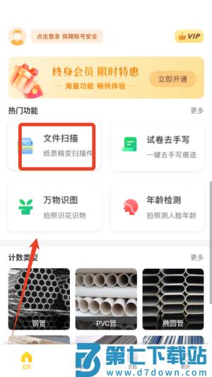 扫描计数:拍照计件,智能AI识别钢筋钢管个数,支持手动增加减少数量,一键分享/保存计数内容。