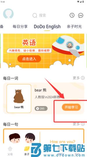 3、在多宝英语板块中,选择分级课程听读单词和句子,搭配趣味配音游戏,让孩子跟读模仿,轻松提升口语能力。