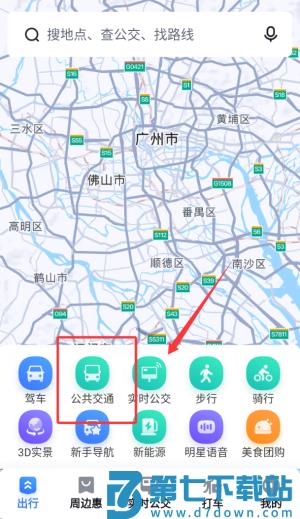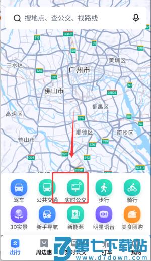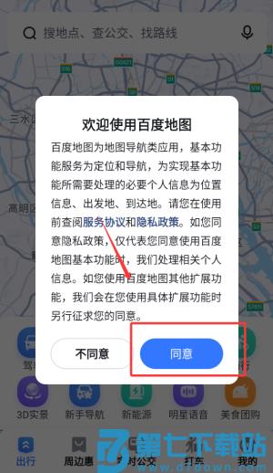 1、阅读并确认服务协议,点击进入公交出行功能主操作界面,开启实时交通信息服务与导航功能。