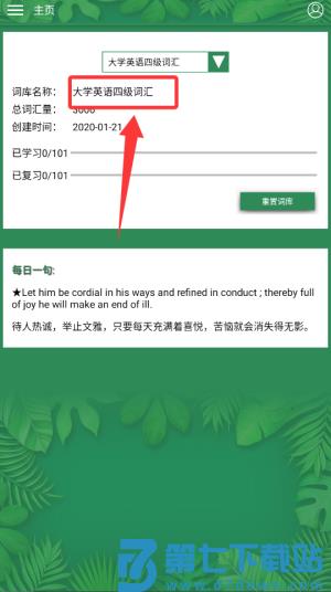 1、打开软件后先选择适合的单词书,比如四级或考研词汇,设定每日学习量,系统会按计划推送新单词和复习任务。