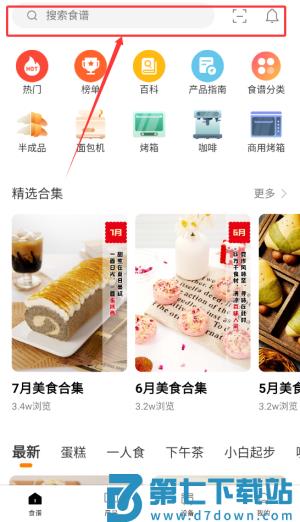 1、在首页顶部设有搜索框,便于快速查找所需食谱或相关饮食内容。