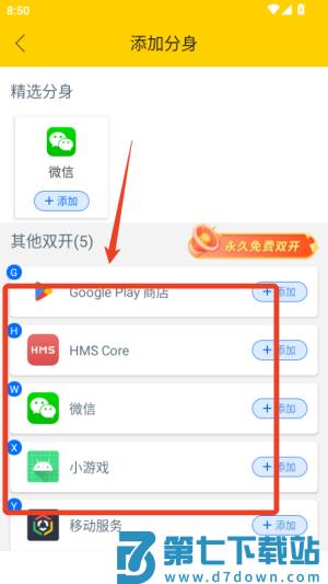 1、打开软件后点击添加分身,选择需要多开的社交或游戏应用,系统会自动生成独立副本。
