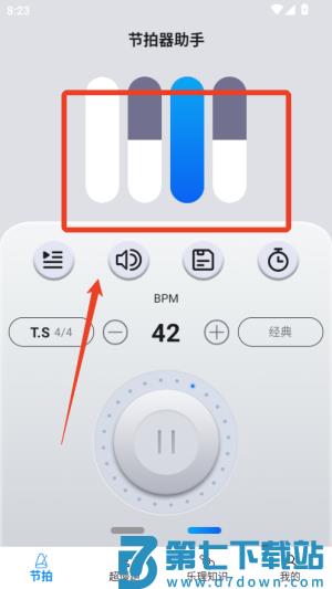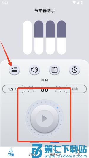 1、打开软件后选择乐器模式,比如吉他或钢琴,设定需要的节拍速度和节拍类型,比如四四拍。