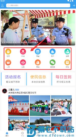 2、首页提供任务与同城等功能入口,点击“同城”即可进入对应板块。