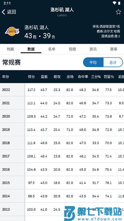 2、然后你可以查看球队,球员的数据,以及最近的重要日期;