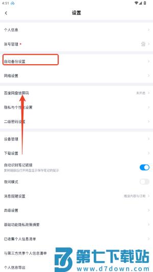2、在设置中开启自动同步功能,这样手机里的新文件会自动备份到网盘,无需手动操作省时省力。