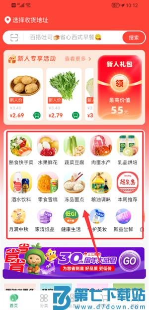 2、首页提供熟食、水果等商品分类,可根据需要浏览选择。