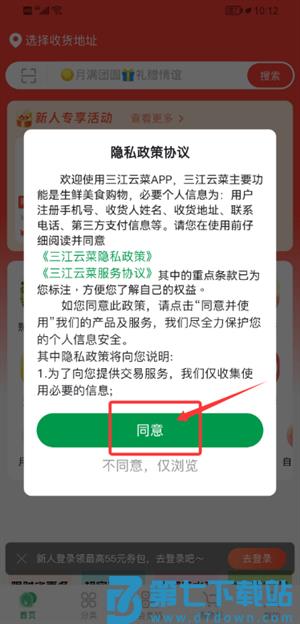1、启动应用后请阅读隐私政策与协议,确认后点击同意进入。