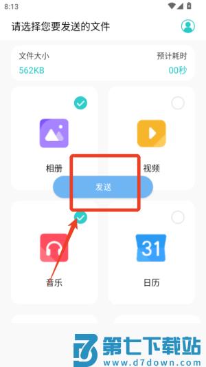 2、接着在旧手机上选择发送文件,在新手机上点击接收,然后用扫码或手动方式建立连接。