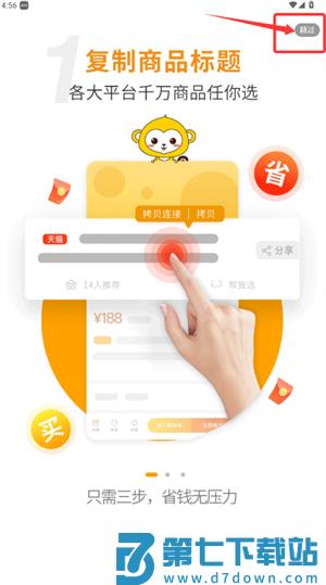 2、在引导页中点击右上角“跳过”按钮,快速进入主页面。