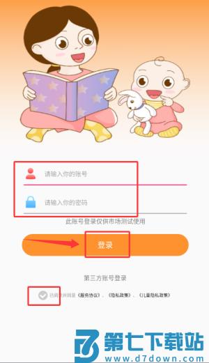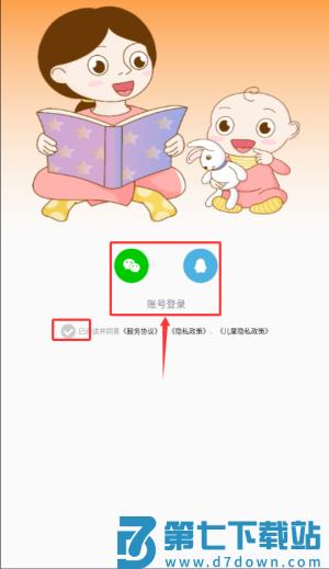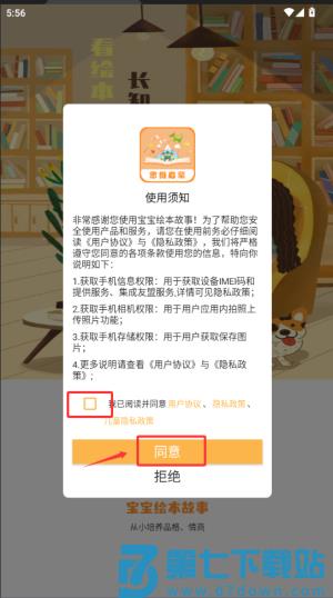 1、启动宝宝绘本故事应用,于协议页面勾选同意并确认条款。