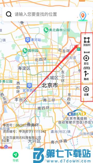 2、侧边功能栏包含面积测量与精确定位等工具可供自由选择使用。