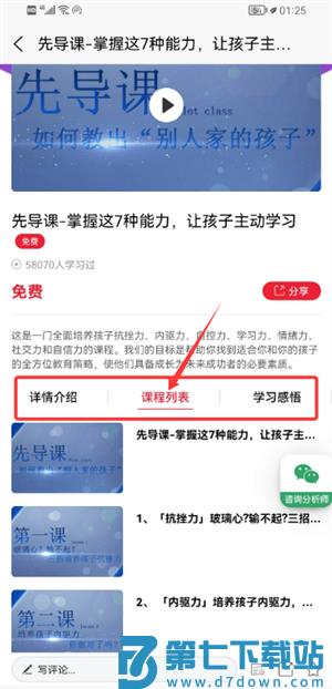 3、在课程详情页中,可浏览介绍信息与学习列表,并查阅相关心得笔记。