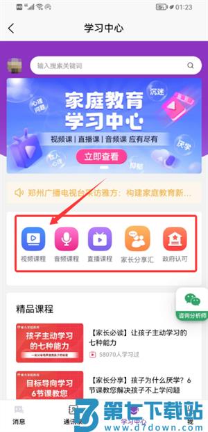 2、进入学习中心主界面,可选择视频或音频等不同形式的课程内容。