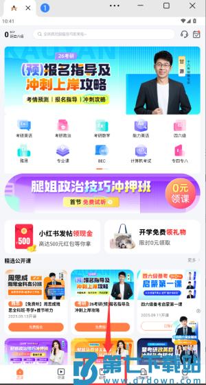 1、下载一笑而过app并注册账号,选择考研英语或四六级目标,进入主界面浏览推荐的精选课程列表。