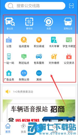 2、平台提供实时公交查询、扫码乘车、在线充值及积分兑换等便捷功能。