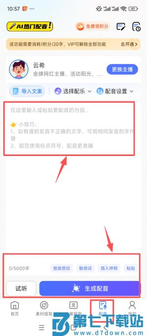 3、通过配音功能输入文本,点击生成即可获得音频文件。