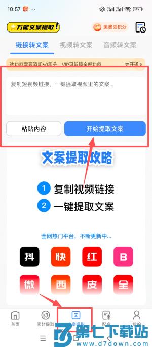 2、选择文案提取功能,输入视频链接可提取文字内容。