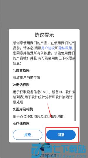 1、完成用户协议确认步骤后进入应用主界面,开启定位导航相关功能服务。