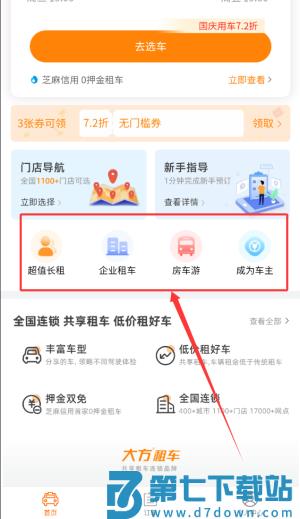 2、平台提供长期租赁、企业服务、房车自驾以及车主加盟等多项业务入口。