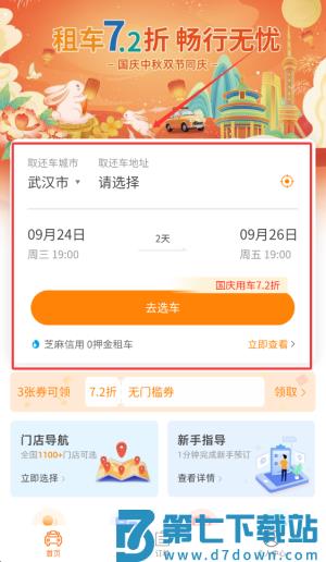 新用户登陆大方租车APP注册即享200元礼包,首次租车首日0租金 (最高立减100元)!