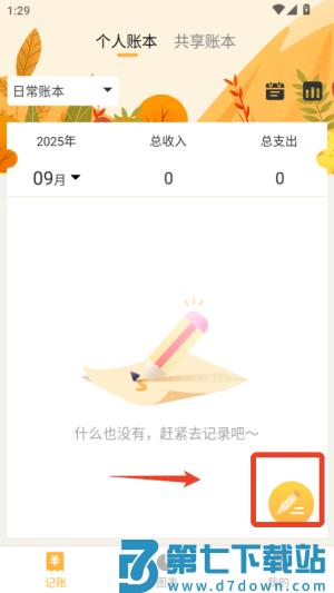 1、打开软件后点击记账按钮,选择支出或收入类型,输入金额和备注,比如早餐15元,快速记录每一笔开销。
