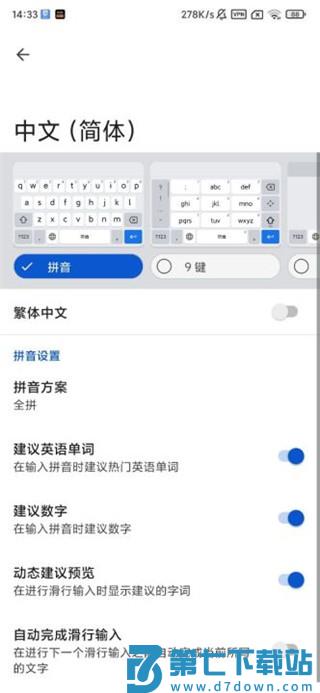 + 单手模式:在大屏手机上,将该键盘固定到屏幕的左侧或右侧