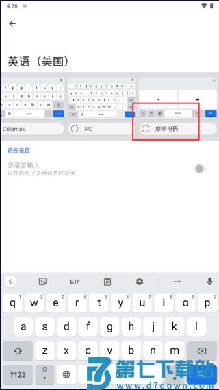 6、再次进入输入界面准备打字,这时Gboard语言依旧是英语(美国),只需点击左下方的地球图标就能切换到摩斯电码。