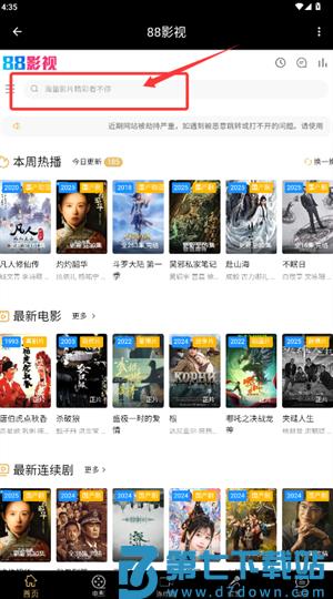 2、通过首页搜索框输入影视名称,可快速检索相关资源。