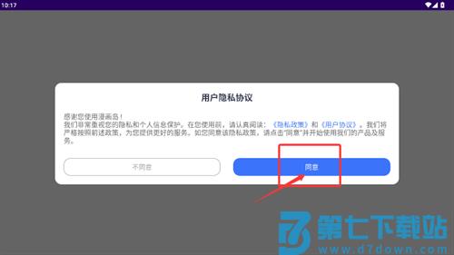 1、启动应用后,请仔细阅读用户隐私协议内容,确认后点击同意按钮。
