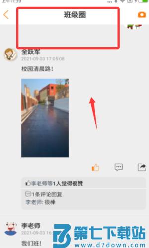 2、点击班级群查看老师发送的课堂反馈、作业通知,通过成绩查询了解学习动态。