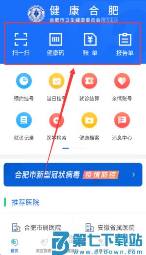 1、首页提供扫一扫功能,便于快速识别二维码,同时集成账单支付与报告单查询服务。