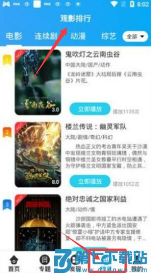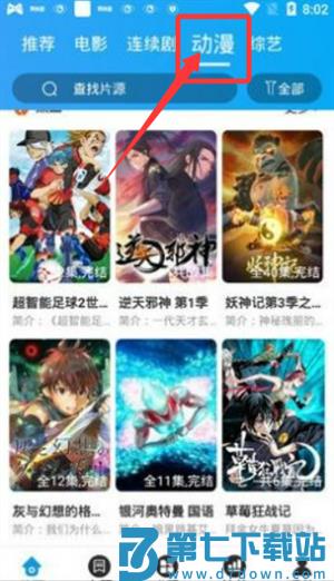 1、启动应用后,顶部导航栏设有推荐、电影及动漫等入口,点击可进入对应专区。