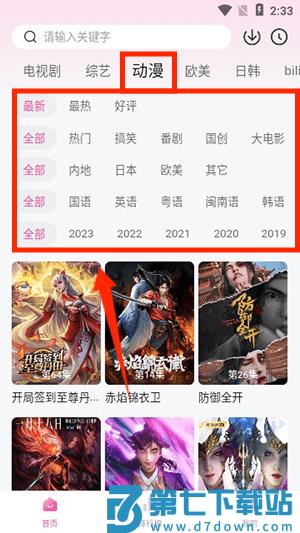 2、在动漫专区中,可按热度、类型、年份、地区及语言等多种条件筛选作品。