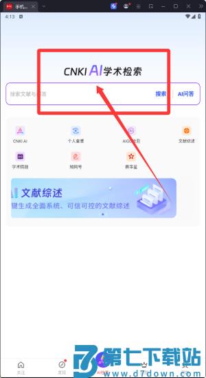 1.打开手机桌面的手机知网app,进入到首页面中。