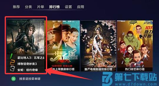 3、进入排行榜页面能够查看热门作品排行,包括“霍比特人3:五军之战”等影片。