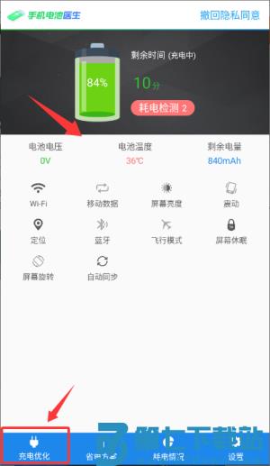 2、主界面显示电池电压及温度等数据,支持充电优化。