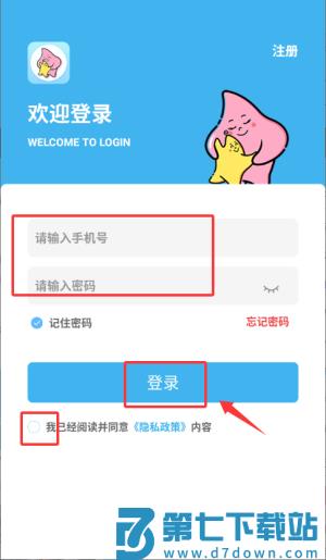 3、输入手机号及密码并勾选协议,完成登录操作。