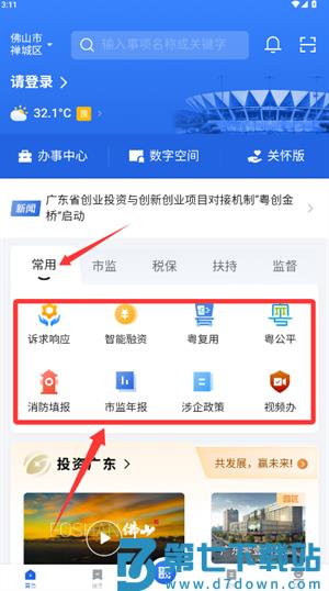 3、在首页,在常用服务栏按需选择诉求响应或智能融资等功能。