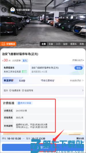2、于预约界面选择地点与停车时间,点击立即预约。