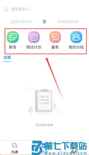 3、患者管理页面支持群发消息、制定随访计划、使用量表及管理患者分组功能。