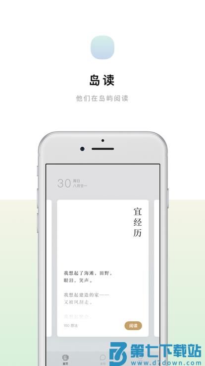 岛读app是一款手机阅读应用软件,界面干净整洁,阅读流畅,我们追求的是阅读时的享受,多样的文章任你挑选,每天都有智能推荐的一日美文,极简设计,快来下载吧!