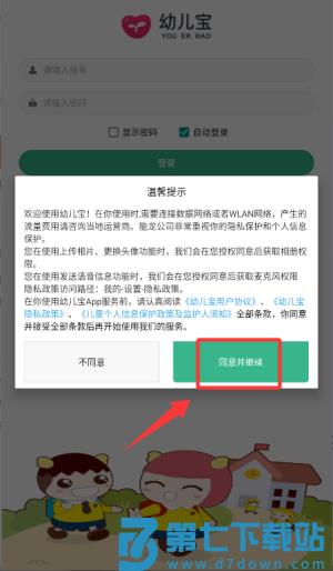 2、弹出温馨提示后点击同意并继续,进入登录页。
